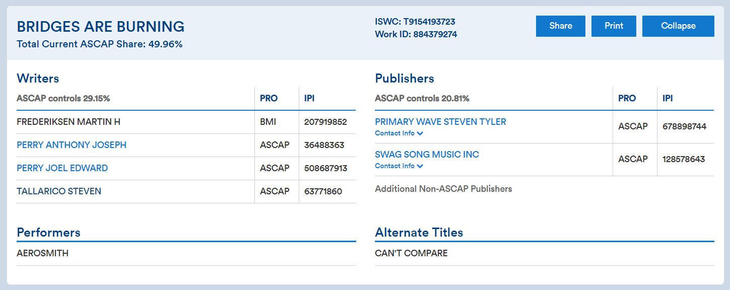 “Bridges are Burning” is a pop-rock song that didn’t make the final cut on the Nine Lives album. It was originally written by Tyler and Perry with Marti Frederiksen and Joel Edward Perry during the 1996 session at the South Beach studios under Glen Ballard’s production. The ASCAP copyright information lists “Can’t Compare” as an alternate title. Tyler works his voice hard in this one, but it rocks, it could almost be considered the poppier sister of the Nine Lives track.