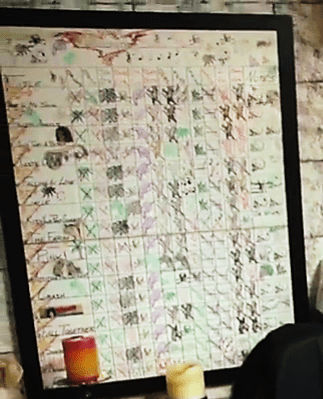 A whiteboard of the song they were working on during these sessions can be seen in their “Vindaloo Music” office, in the background of a clip that shows Steven and Tom fooling around at the end of episode 2 of the web series about the “Making of Music From Another Dimension“. The titles that can be read are possible: