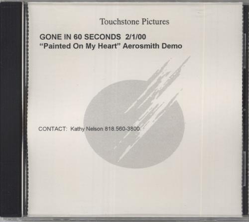 “AEROSMITH Painted On My Heart (2000 US 1-track demo Touchstone Pictures promo-only CD-R acetate as featured in the movie ‘Gone In 60 Seconds’ custom printed disc and title/track listing inlay stating Aerosmith demo for ‘Gone In 60 Seconds’).”